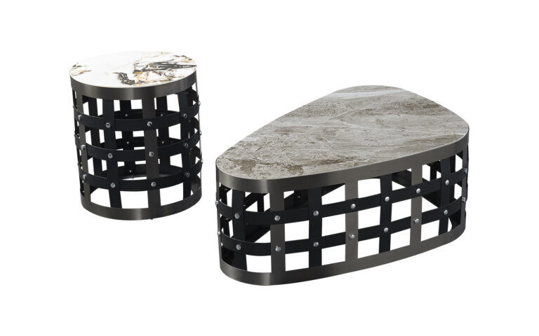 1.القاعدة المصنوعة من مواد عالية الجودة مثل المعدن أو الخشب ، مصممة في نمط شبكة يضيف الاهتمام البصري والإحساس الحديث إلى المجموعة.تصميم الشبكة لا يعزز الجمالية فحسب بل يوفر أيضا الاستقرار الهيكلي والدعم.