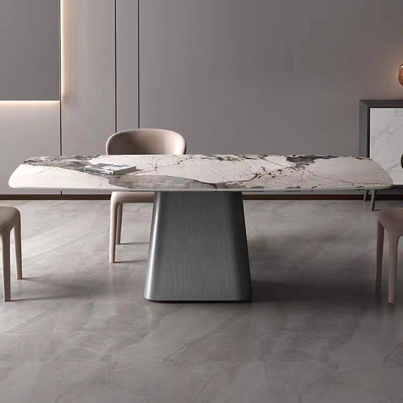 طاولة طعام فاخرة ذات تصميم فريد من الفولاذ المقاوم للصدأ طاولة مستطيلة